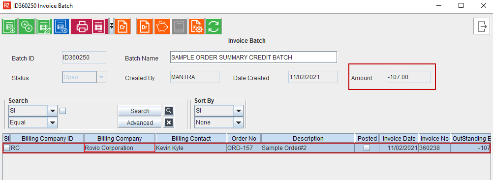 Similarly, the Invoice Batch Amount gets updated correctly for the Summary Debit as well.