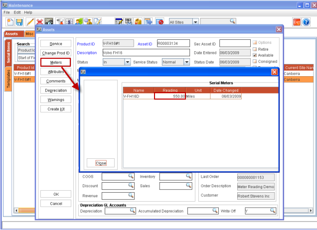 Fill the asset [Item-1#1] on the Order, system will display the dialog box for updating the meter value with existing meter value if any.
