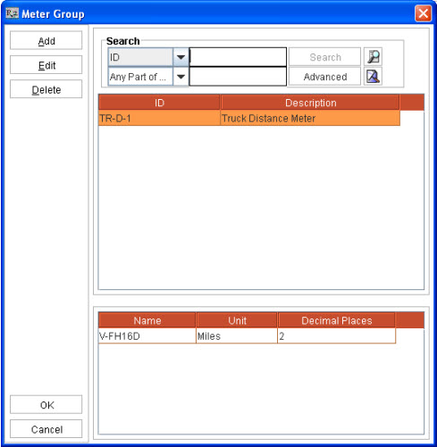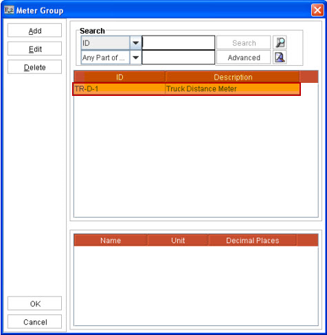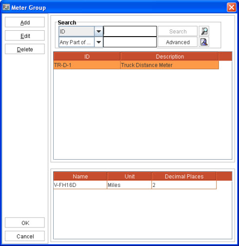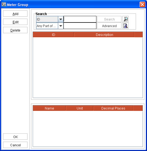 Search for the desired meter definitions and double click the definitions to attach it to the meter group. Click OK.