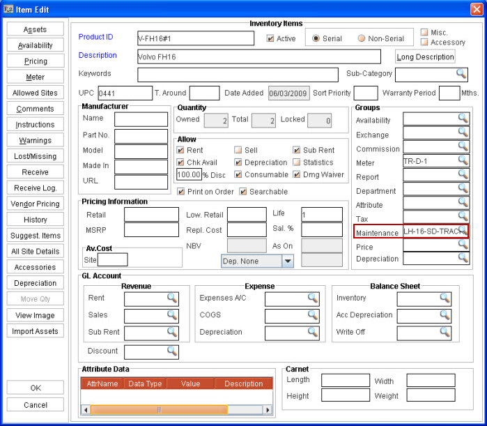 Double-click (to tag) on a schedule list record to add it as the Maintenance Group of Item.