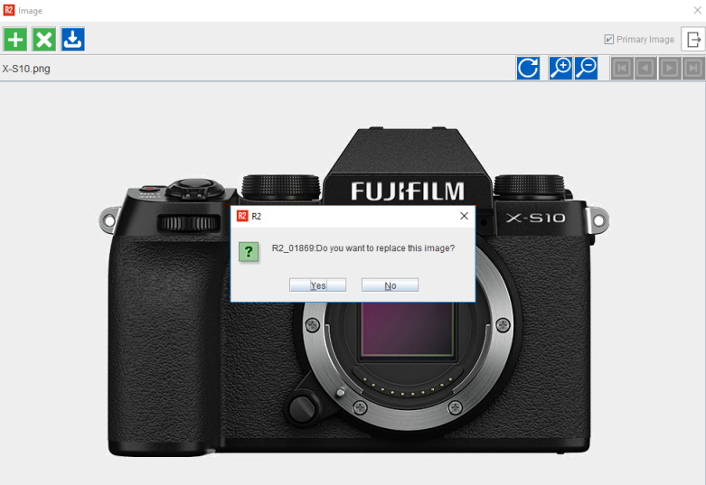 Download: You can save the image currently displayed in the view port to a local folder or wherever the R2 application is installed.